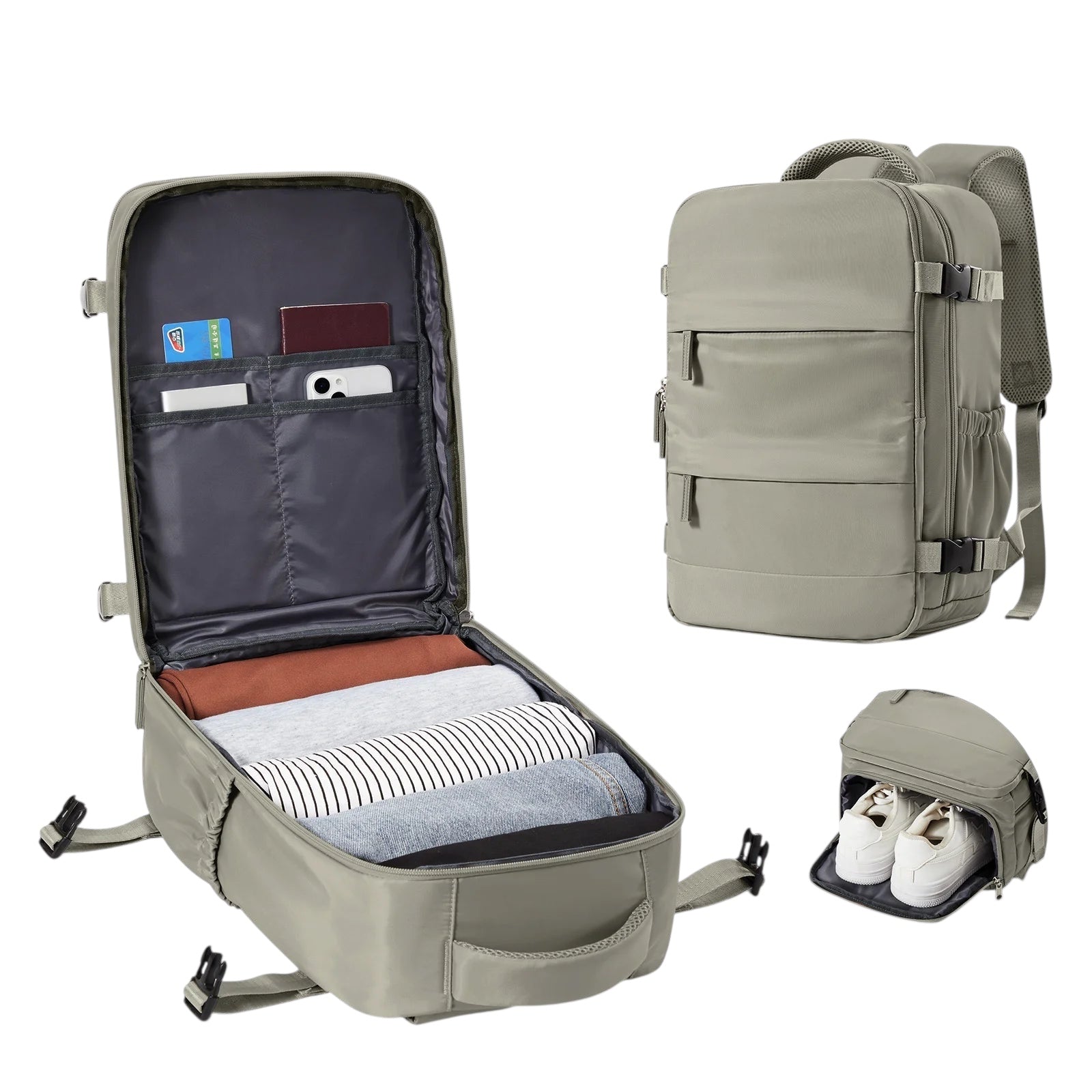 A compact and versatile travel backpack designed to meet cabin luggage requirements. Suitable for men and women, it features a spacious main compartment, laptop sleeve, and durable construction—perfect for leisure, work, or travel.